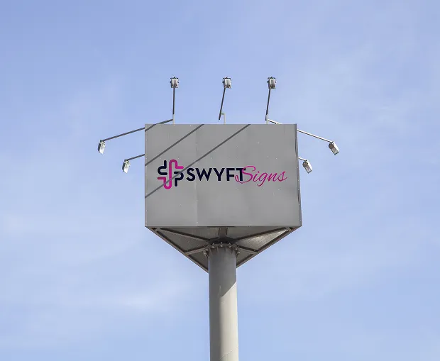 Pylon signs are the ultimate choice for businesses seeking to grab attention from a distance. Perfectly suited for locations along busy highways or high-traffic streets, these towering signs ensure your brand is visible from afar. At Swyft Signs, we offer customized pylon sign solutions to help your business stand out.